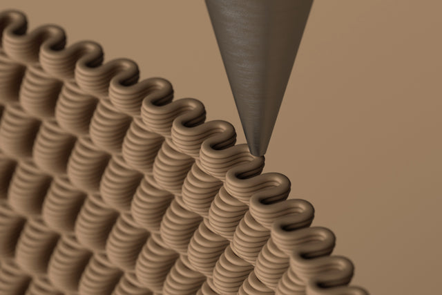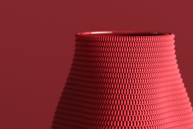 オブジェクトの表面に施されたルーバーの凹凸は柔らかな奥行きを感じさせ、光の角度により様々な表情をつくりだします。3dプリンターを使用し厚さ0.3mmの層を幾層にも積み重ねて製造されます。